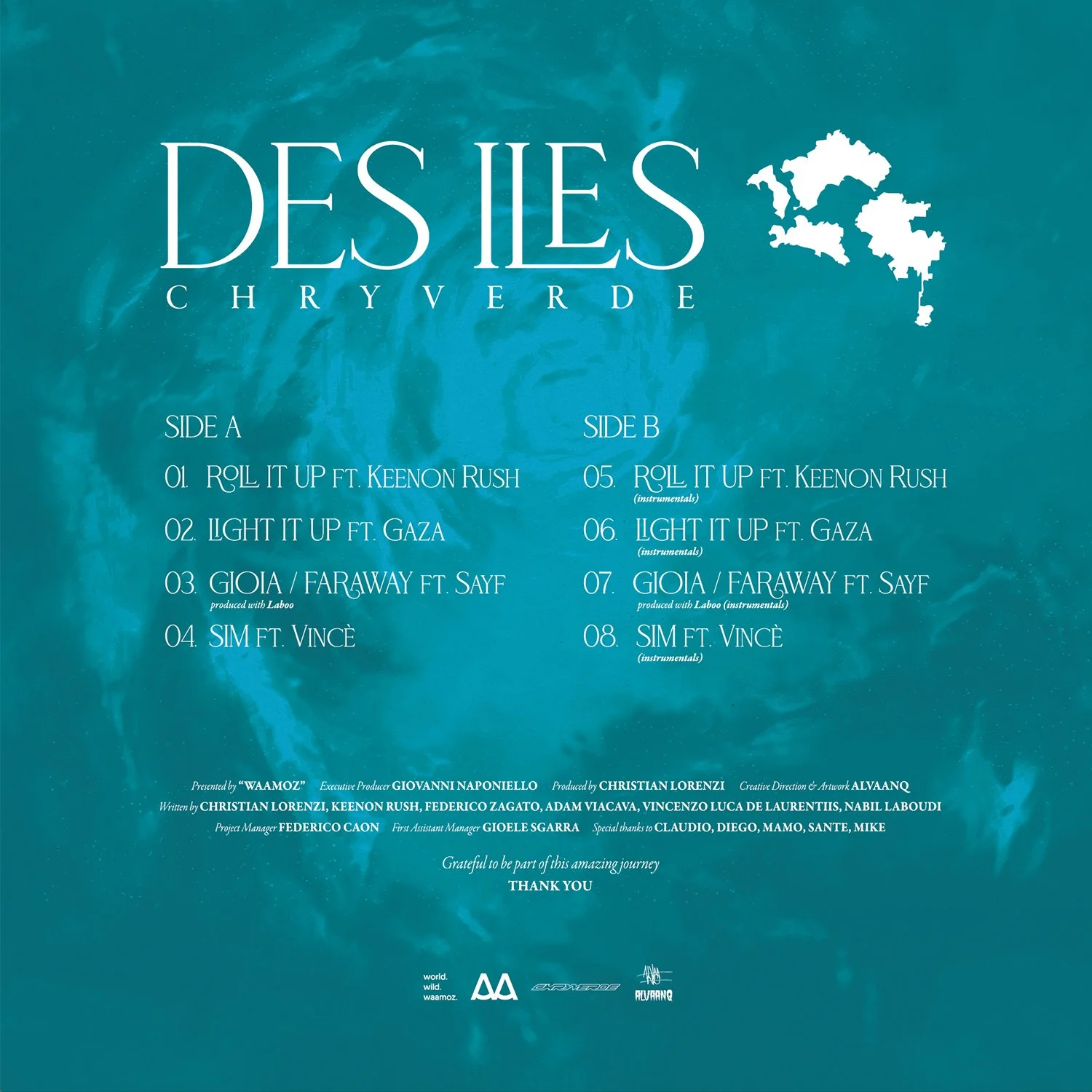 Rilasciato ad ottobre 2023 il progetto ha come elementi centrali l’acqua, caratteristica che accomuna il suo luogo di nascita e il luogo di provenienza dei featuring all’interno del progetto. E la metafora del viaggio, i personaggi all’interno della copertina accompagnano Chryverde sulla sua zattera.